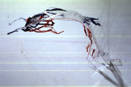 "Everything is Going To Be" from the series: "I Am Not a Superhero" used clothing, plexiglass, wire, cast rubber, tubing, and other materials 49" x 22" x 42"1992