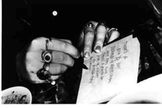 Is that better? she thought. The way he said, Let me open the door, his perplexity about photographing the hole, the way he said, Is that better? was priceless and ridiculous at the same time. She fell in love with him. For a minute. He changed in her eyes in the dark ugly vestibule. She could fall in love with anyone. He was still holding the front door open so she could get a better shot of the hole. She knew the picture wouldn't come out. It was close to hopeless, futile. The City might still be impressed by the documentation. They also had to get photographs of loose tiles and the grease in the corners. There was a stair that slid out by itself, and anyone could slip off and kill themselves, it just came out, but it was hard to take a picture of that. They moved the stair to show its mobility, to demonstrate it in its improper, dangerous position. Photographing dust on the walls was implausible. She did it anyway and looked at Ernest. He was smiling, reassuringly. He knew it was absurd. He wasn't deluded, he was optimistic. Ernest was a mystery. She looked at his mouth. She had never noticed the thin scar on his chin. Maybe he'd been in a duel. He was Erroll Flynn or Harrison Ford, a swashbuckler for tenant's rights. She could fall in love with anyone if the timing was right and the place was right, or wrong. Propinquity, proximity, if she was in a room long enough with someone, with no other people around, or if she were trapped in a place, she could fall in love with anyone. Like an animal. She liked animals. They were adaptable. Anyone could fall in love with anyone, under the right circumstances. Maybe it was the survival instinct. Elizabeth wasn't sure she had one. People want to continue themselves, protect themselves, get pleasure. People wanted pleasure all the time, anytime, anyplace, they'd do anything to get it. Everyone was capable of the most hideous behavior and crimes to get it. The pursuit of pleasure wasn't pretty. It made people cruel during tender moments. If they weren't really getting what they wanted, they could kill as easily as kiss. Ernest was driven. Driven was sex to her, sexy. Someone active and alive with desire for anything is sexy. Maybe not driven for ice cream or for heroin, because it excluded you, the possibility of you. She could kind of tell what somebody was like sexually, what their body might act like if stimulated, from the way they wanted supposedly nonsexual things. Nothing wasn't sexual. Ernest and Elizabeth finished for the night. They had done the job. The polaroids were flat and weird, but they were evidence. They showed something. Maybe the City would appreciate that.
