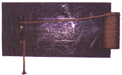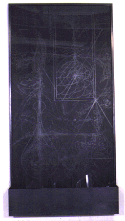 "Carbon Series: 'Damocles/Suspension'" 8'x4'x1', carbon, wood, glass