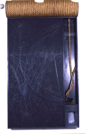 "Carbon Series: 'Damocles/Release'" 9'x5'x1', carbon, wood, glass, manilla rope, metal